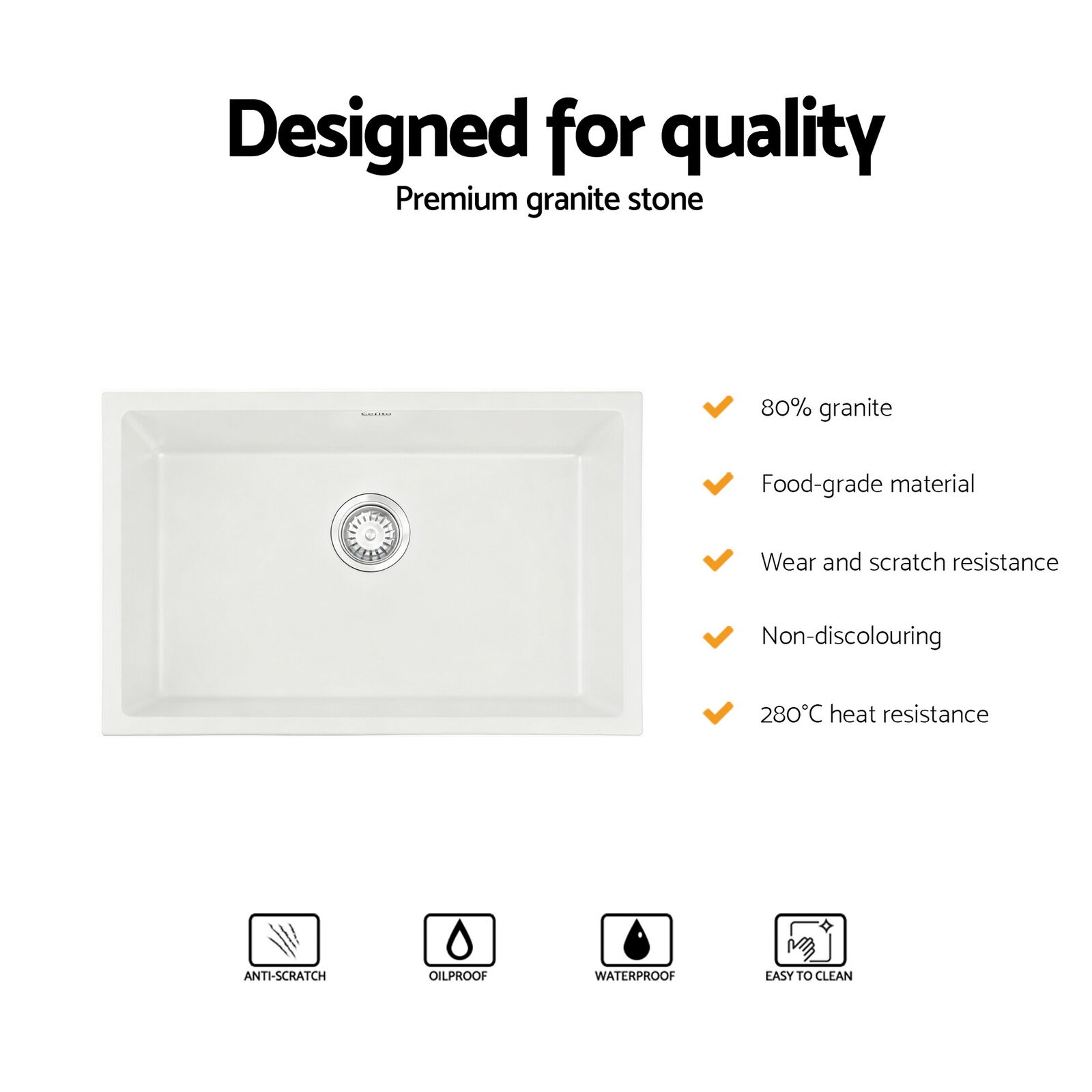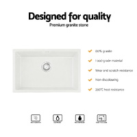 Elevate your kitchen utility with our Stone Sink series, designed for superior performance and lasting aesthetic appeal. This product is constructed using an advanced composite material, featuring a high concentration of 80% granite for a dense, highly durable body. The surface is engineered to handle rigorous daily use, demonstrating reliable impact and wear resistance against heavy things. Functionality is paramount: the sink is resistant to scratching, high heat (up to 280°C/536°F), and oil penetration, simplifying cleanup and maintaining a flawless appearance. Built with food contact grade materials, the non-porous structure is designed to support a hygienic preparation area. This versatile range offers both Single and Double Bowl options, available in contemporary Black or White finishes, ensuring an appropriate size and style is available for any home renovation or new build project.