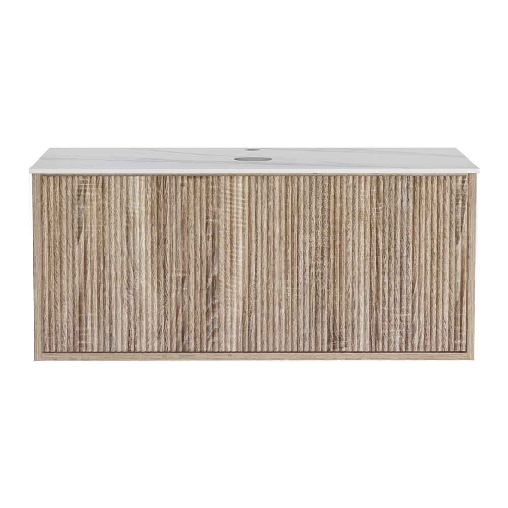 Built to last, the vanity features robust engineered timber construction with moisture-resistant coatings, ensuring durability in humid environments. The soft-closing hinges prevent slamming, while the pre-cut basin and tap holes simplify installation, making it compatible with most above-counter basins.