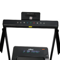A standout feature is the built-in remote control slot, ensuring your remote stays securely stored, so you never misplace it between sessions. The treadmill also offers a spacious 45x110 cm running area, providing plenty of room for comfortable movement. The dual-layer running board with silicone shock absorbers reduces impact on your joints, promoting a safer, more comfortable exercise experience.