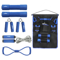 Enhance your fitness with our comprehensive resistance training kit. Ideal for fitness enthusiasts, it offers versatile workouts. All components fit neatly in the included bag, convenient for on-the-go use or organization. The figure eight resistance band is a standout, helping with shoulder stretching and relieving muscle tension. Handheld dumbbells are great for strengthening wrist power, popular among women and seniors. Target wrist muscles for better grip and stability, useful for daily tasks and recovery. The hand gripper enhances grip strength further, essential for lifting and typing. The jump rope boosts endurance and core strength, a convenient cardio tool anywhere. Start your fitness journey today and step towards a healthier, stronger you.