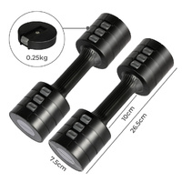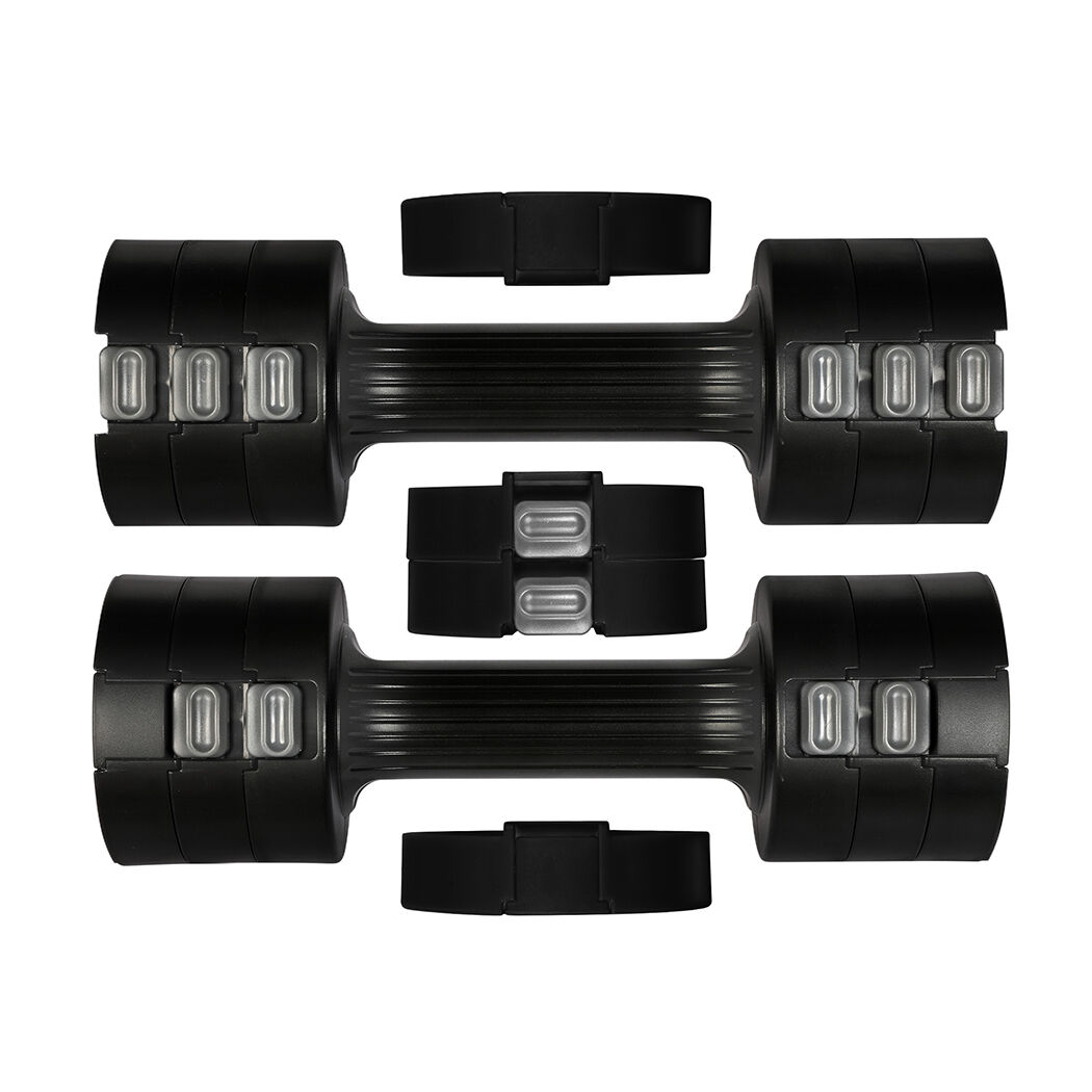 This adjustable dumbbell offers 4 different weight settings, ranging from 1kg to 2.5kg for a single dumbbell and from 2kg to 5kg for a pair of dumbbells.