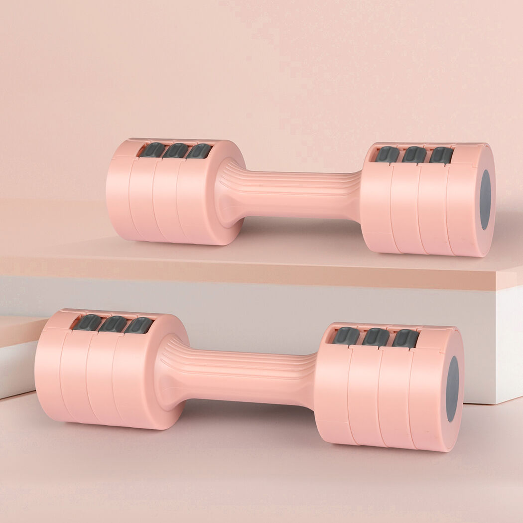 This adjustable dumbbell offers 4 different weight settings, ranging from 1kg to 2.5kg for a single dumbbell and from 2kg to 5kg for a pair of dumbbells.