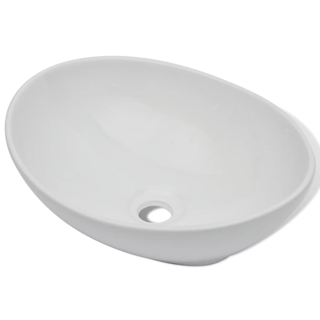 This oval-shaped wash basin, made of premium ceramic, will be a stylish addition to any bathroom, washroom or powder room. Its high gloss finish brings a modern yet elegant design. This artistic ceramic basin is more than just a practical vessel for everyday use, but it is an adornment for your living space. It will definitely suit any interior style. In addition, the basin is quite easy to clean. The drain hole is 4.5 cm in diameter. Please note that no drain is included in delivery.