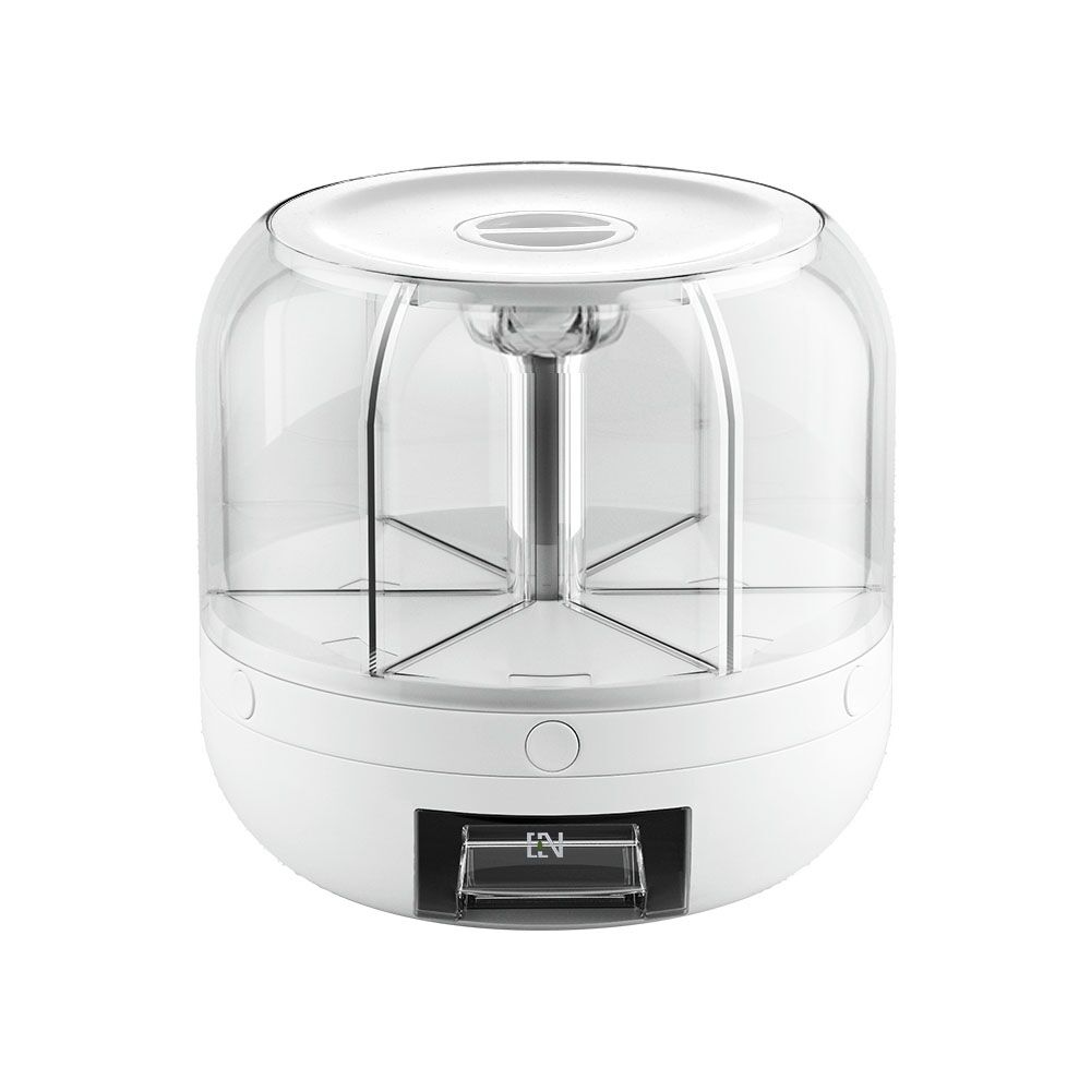 Rice, lentils, lollies, corn, peanuts, or other food items that you need to store, keep them organised with our cereal dispenser. It features a simple and practical design, which makes it quite desirable and easy to use. Our cereal dispenser has six storage compartments that allows you to store a variety of items. The compartments are spacious enough and comes with 7kg storage capacity. Furthermore, this cereal dispenser boasts space-saving design. Now, you don't have to use different containers to store different food items. This All-in-one cereal dispenser will keep your kitchen storage clutter-free and organised. The cereal dispenser has one-press grain outlet. It's simple and easy to operate. You can even remove the top cover with built-in handle. It comes with a larger opening for easy and convenient refill and a 700ml u-shaped measuring cup to conveniently to pour the food items. Made from food-grade and non-toxic clear, transparent plastic, this cereal dispenser is odourless and safe to use. It's insect-proof and prevents moisture buildup. And with 360? rotatable design, you can choose what food items you need to take out conveniently. The cereal dispenser also has an anti-slip bottom pad to prevent slipping. Purchase this versatile and convenient cereal dispenser for your kitchen today.