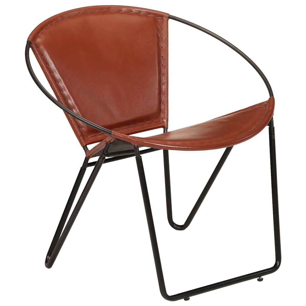This soft and comfortable genuine leather chair has a classic design that's all the rage right now. It will look great not only in your living room at home but also in your outdoor living space. The real leather seat and backrest are soft to the touch and very comfortable, while the powder-coated steel frame makes the chair durable. The beautiful lines of the construction add to the relaxing chair's unique and vintage look. The item is already assembled; no assembly is required. Important note: Leather patterns may vary from piece to piece, making each of our chairs unique. The delivery is random, ensuring the exclusivity and individuality of your product.