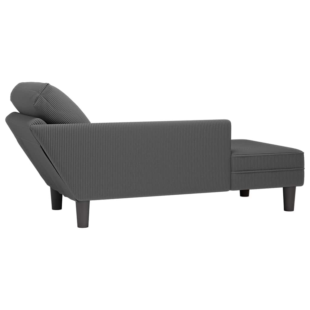 Brighten up your living area and unwind in style with this great chaise lounge! Our comfortable chaise lounge with its elegant look and functionality is a timeless and practical addition to any room. Soft and durable material: Corduroy fabric is a durable textile characterised by parallel ridges that give a smooth, soft feel and is easy to maintain and resistant to wrinkling or fading. It is also commonly used for upholstery such as upholstery and curtains due to its cosy feel and wearability.Comfortable seating experience: This chaise lounge is filled with high resilience foam that contours to your body, offering tailored support that helps reduce strain on your neck, shoulders, back and waist.Lumbar pillow for added comfort: The included lumbar pillow provides maximum comfort and support when you sit or lean on the lounge sofa.Versatile use: This chaise lounge is a versatile and stylish addition to any home or office leisure area. Whether you place it near the living room sofa or create a cosy corner in your bedroom or study, it will enhance the aesthetic of your living space. Good to know:Due to transportation, you may notice some wrinkles in the fabric, especially on the skirt. For a neater appearance, we recommend ironing them out. Good to know:When you open the box, you may notice wrinkles on the fabric cover. To smooth them out, gently use a steam iron on the fabric before or after assembly for a neat finish.