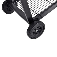 This classic charcoal barbecue has a high-quality construction. It’s made of sturdy and durable steel. This barbecue works on charcoal. Included are two charcoal grills and there is a lower shelf which is handy to store your barbecue accessories. This charcoal barbecue has two wheels, these allow you to move the barbecue around.