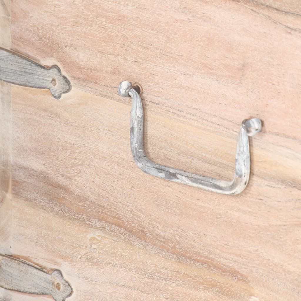 The wooden chest adds a simplistic look to your home decor and provides ample storage space for your items. The chest is made of solid acacia wood, making it stable and durable. It has a latch on the front and two handles on the side for lifting the chest. This storage box, with a stable flat top, can also be used as a bedside table. The craftsmanship and the beautiful wood grains make every piece of furniture unique and slightly different from the next. Important note: Colours and grains may vary from piece to piece, making each piece unique. The delivery is random, ensuring the exclusivity and individuality of your product.