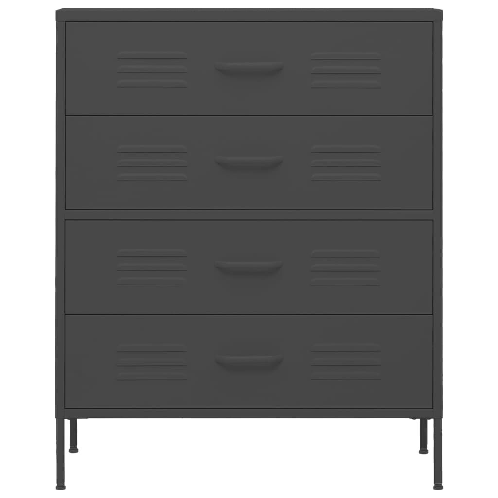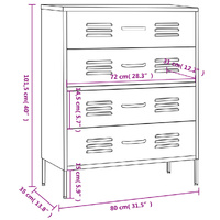 This chest of drawers with practical design is a real eye-catcher for your home decor. This side cabinet, featuring a steel construction, is sturdy and durable. There are levellers on the bottom to adjust the height according to your needs. The drawers can be fully extended and are ideal for keeping all kinds of smaller items organised and within reach. Drawers with ballbearing runners ensure smooth opening and closing, even under increased load.