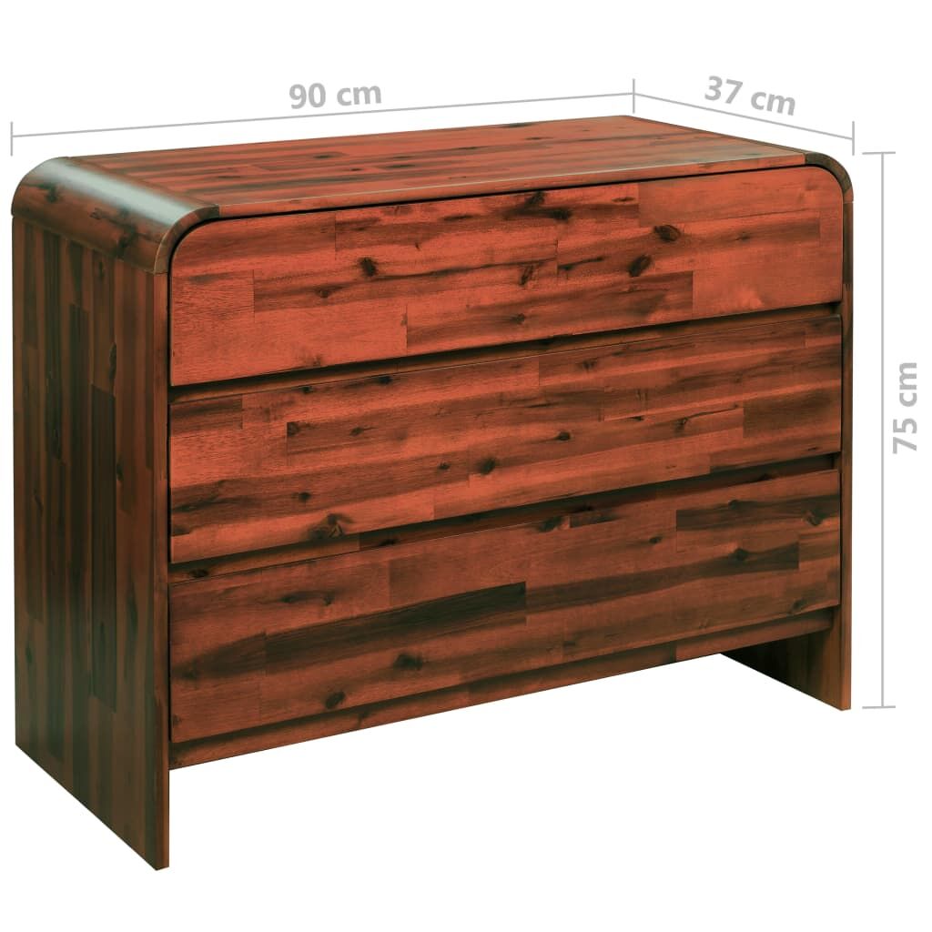 Our wooden chest of drawers will give your home decor a sophisticated touch with its timeless design. The chest of drawers is made of solid acacia wood, making it sturdy and durable. The wood has beautiful grains that give the furniture a touch of natural style. The wooden cabinet has 3 drawers and provides an ideal storage solution for clothing and smaller items. Thanks to its compact design, this drawer unit doesn't take up much space but is very practical. This product needs assembly.