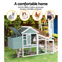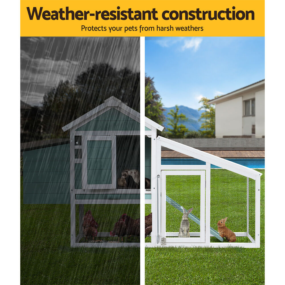 $223.71Give your beloved pets a safe and comfortable home to sleep, rest, play, and relax. The i.Pet's pet hutch makes a cosy home for your dear pets they will love and cherish forever. This pet hutch is suitable for smaller pets such as rabbits, chickens, hens, guinea pigs, hamsters, chinchillas and ferrets. Our pet hutch features a solid fir wood construction with galvanised mesh that ensures its sturdiness and durability for many years. It has a stable and firm base with strong metal support rod that's crucial for stability. Our pet hutch has green asphalt felt roof that provides good protection from sun and rain, keeping them cool in summer and warm in winter. It has a spacious integrated ground enclosed play area that allows your pets to have a great playtime outdoors. And the built-in foldable ramp that connects the ground area and hutch enables convenient entry and exit. Furthermore, the pet hutch also comes with a hatching box for egg collection and a slide-out tray for easy cleaning, and the entrance door with sturdy security locks makes it even more convenient and reliable. The enclosed play area has a mesh structure, which keeps your pets comfortable and well-ventilated. This pet hutch will give your beloved pets the utmost joy and pleasure. Gift this pet hutch to your pets today, and be sure to get much love in return.