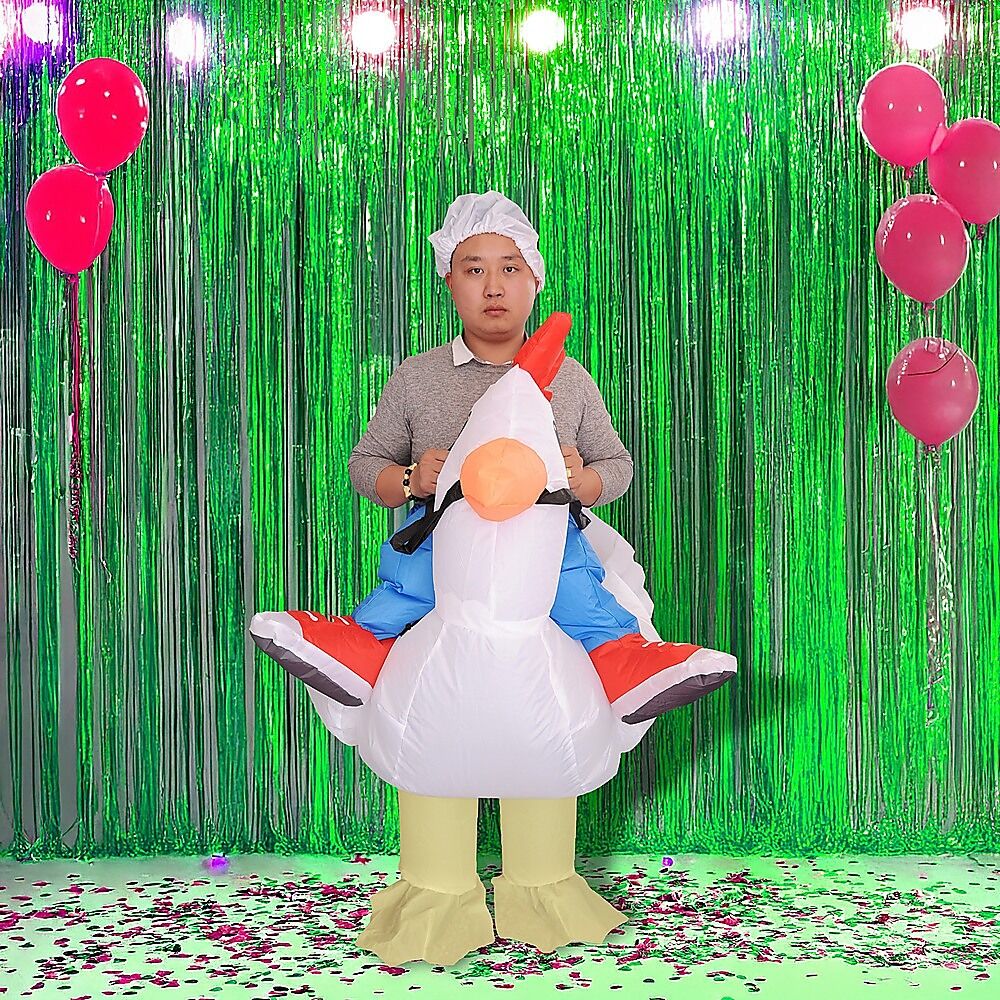 Bring some real fun and surprises to the next party you attend. Crash the party wearing our Inflatable Fan-Operated ChickenCostume. Youll be comfortable in this costume made of feather-light material. Youll be the center of attention and every party guest will be delighted with this comical, bright and unforgettable costume!