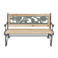 This decorative wooden garden bench is a perfect addition to your home garden. Coming with a patterned bronze finish iron frame, this bench brings a vintage and classic style to wherever it goes. Made of durable wood, the seat slats and backrest offer great support and optimal comfort as well. This home garden bench is suitable for your children in consideration of its size. They will surely have a good time on this lovely bench with the company of those vivid animals and plants in the backrest. Note: Please check the size of this bench before you decide to buy it since it is a children bench.