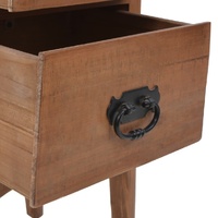 This classic wooden bedside cabinet will make a decorative addition to your bedroom. It can also be used as a nightstand, end table or sideboard. This highly stable and durable side table was crafted from solid fir wood and also exudes vintage charm and gives its rustic characteristics. It has a sturdy top and two drawers which provide enough space for you to keep various items such as books, glasses, remotes, etc. neatly organised and within reach. This bedside cabinet is easy to assemble.