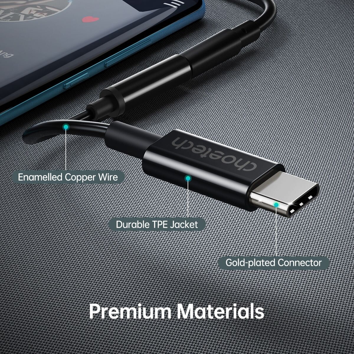 CHOETECH AUX003 USB-C to DC 3.5mm Female Headphone Jack Adapter Aux Audio Cable