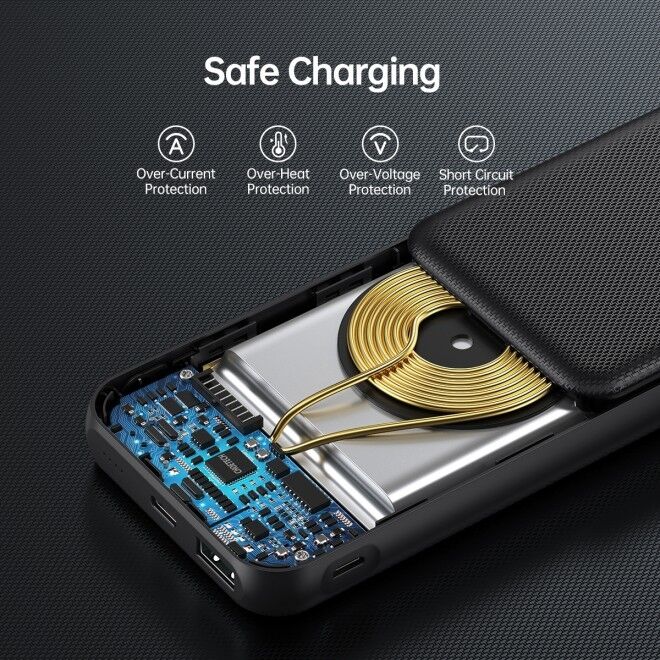 This battery charger is a combination of a fast wireless charger pad and a portable mobile power supply for fast charging. Charging speed is 4 times faster than the other traditional power bank.