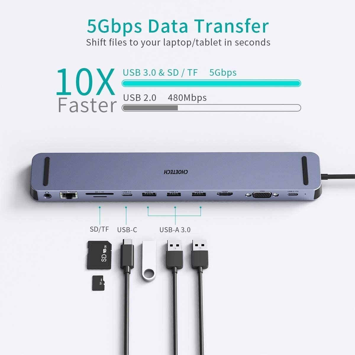 1x CHOETECH HUB-M20 USB-C 11-in-1 Multifunction Adapter