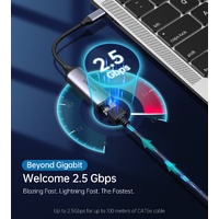 USB C to gigabit ethernet adapter carry up to 2.5 Gbps ethernet speed without data lag. Use ethernet cable on up to CAT5e to achieve the highest at 2.5 Gbps.