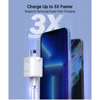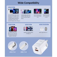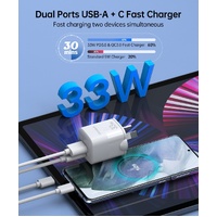 With a total output of up to 33W, this dual USB-A and USB-C wall charger will intelligently identify your devices and provide the fastest and most efficient output current - 33W for the USB-C port, 30W for the USB-A port.