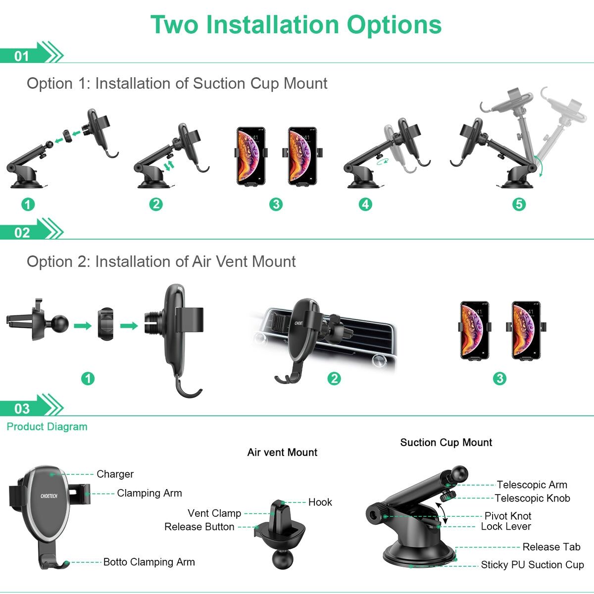1 x CHOETECH T536-S Fast Wireless Charging Car Mount Phone Holder