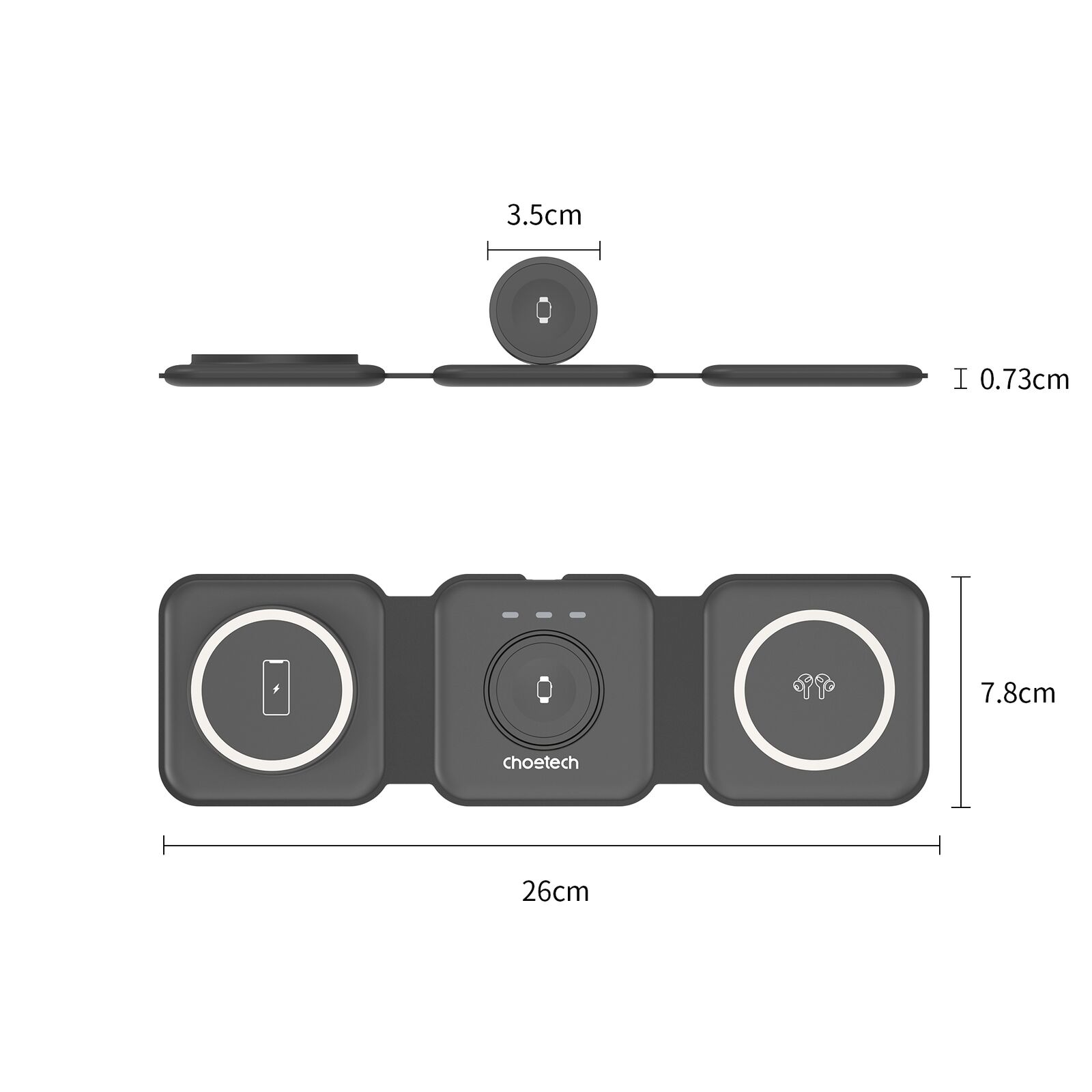 CHOETECH T588-F-BK 3-in-1 Foldable Fast Wireless Charger for Phone/Watch/Earphone