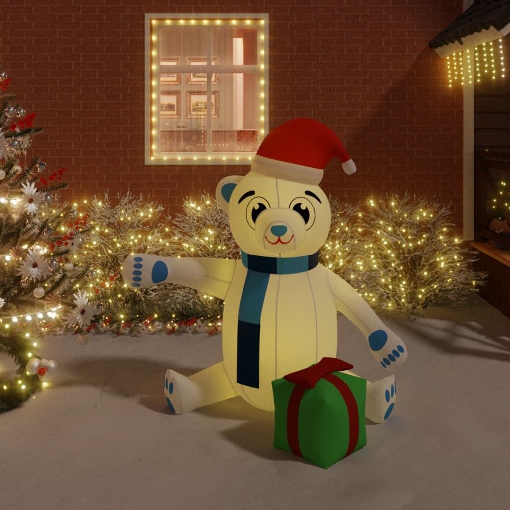 $63.89Spread the extra holiday spirit and create the ultimate festival Christmas display in your yard with this Christmas inflatable teddy bear! Practical material: Made of Oxford fabric with a PU coating, this Xmas decoration is lightweight, weather-resistant and easy to clean.Built-in LED lights: The inflatable party decoration features LED lights built inside, which enhance the festive atmosphere and make your house stand out.Quick inflation and deflation: The large blow up yard decoration has a built-in fan and can be easily inflated in minutes. Unplug the adapter, and the holiday decoration automatically deflates for easy storage. Note:Each product comes with an assembly manual in the box for easy assembly.