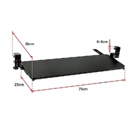 $76.13Whether you work at home, at the office, or both, you probably would appreciate a little more space. With this uber-efficient sliding keyboard tray by Randy Travis Machinery, you'll have an extra flat surface to hold your keyboard and mouse while still keeping your reading material close at hand on the desktop itself. Simply clamp it on, adjust it to the perfect height for you, and start working. Heavy-duty padded C-clamps hold it firmly in place without harming your desktop. It fits desktops 0-8cm easily. Deep and wide, this pull-out tray can accommodate ergonomic keyboards and mice.