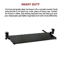 Its bevelled front edge serves as a comfortable resting spot for your wrist, while a built-in cable management system keeps wires untangled and organised. Its ball-bearing-powered sliders extend the tray out easily. Commercial-grade steel hardware with a powder-coated finish ensures that it will stand up under years of heavy use. Perfect for home or office, this sliding keyboard tray will help you and your employees get better organised and work more efficiently. Order yours today!