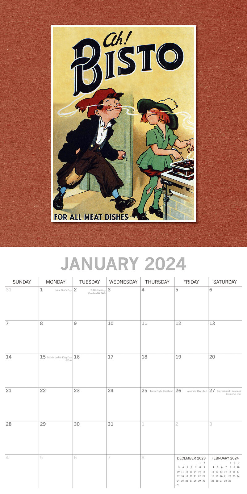 Take a nostalgic trip back in time with our "Classic Advertising" 2024 calendar. Revel in the charm of vintage adverts, capturing the zeitgeist of yesteryears in vibrant art. Brand New Calendar with Beautifully design, Sealed in Original Packaging, each calendar includes a large grid running from Sunday to Saturday. Publisher: The Gifted Stationery Co. Dimensions: 30cm (w) x 30cm (h) closed; 30cm (w) x 60cm (h) opened Time Span: 16 months (January to December 2024 monthly, September to December 2023 on-a-page) 2024 Square Wall Calendar featuring beautiful colour photographed images for every month of the year. Like most Wall calendars, this one comes with: