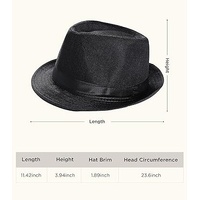 CLASSIC TRILBY HAT Fedora Cap Costume Gangster - Black- One Size (58cm)