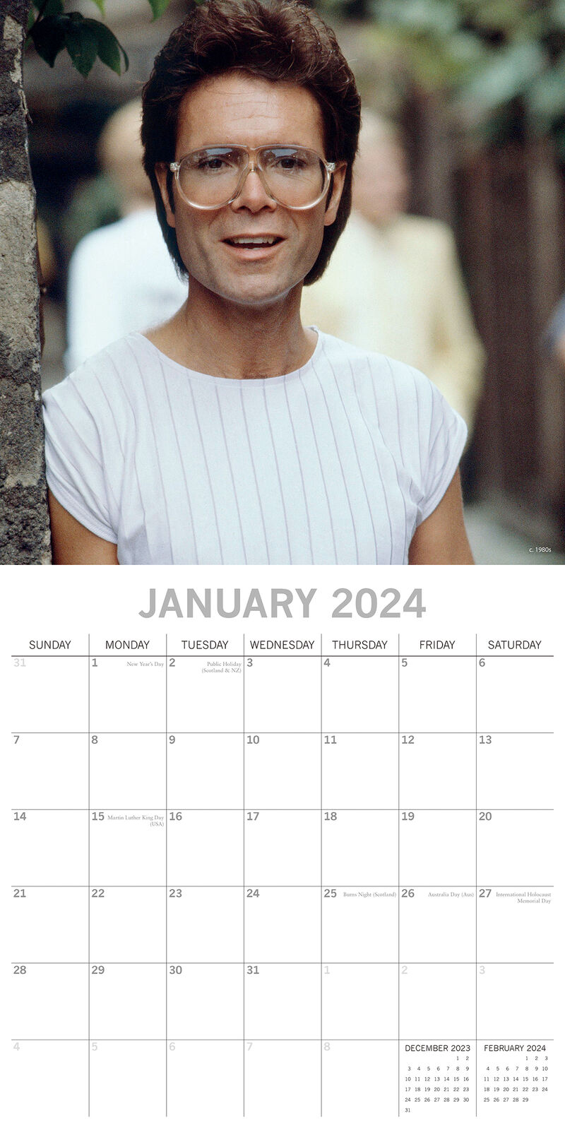 Cliff Richard 2024 Square Wall Calendar 16 Month Planner Christmas New Year Gift