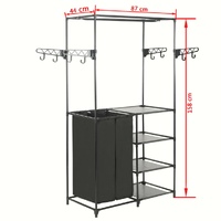 This minimalistic clothes rack is an ideal storage solution for the bedroom or bathroom. It has a tubular, powder-coated steel frame, which is lightweight yet sturdy, making the clothes rack easy to move around and quite durable. It has two generous bags and four shelves that are made of a non-woven fabric, and designed to keep your bags, shoes or small items organised and within reach. It also has four side arms with hooks for additional storage space for your longer clothing like coats and jackets. Assembly is easy.