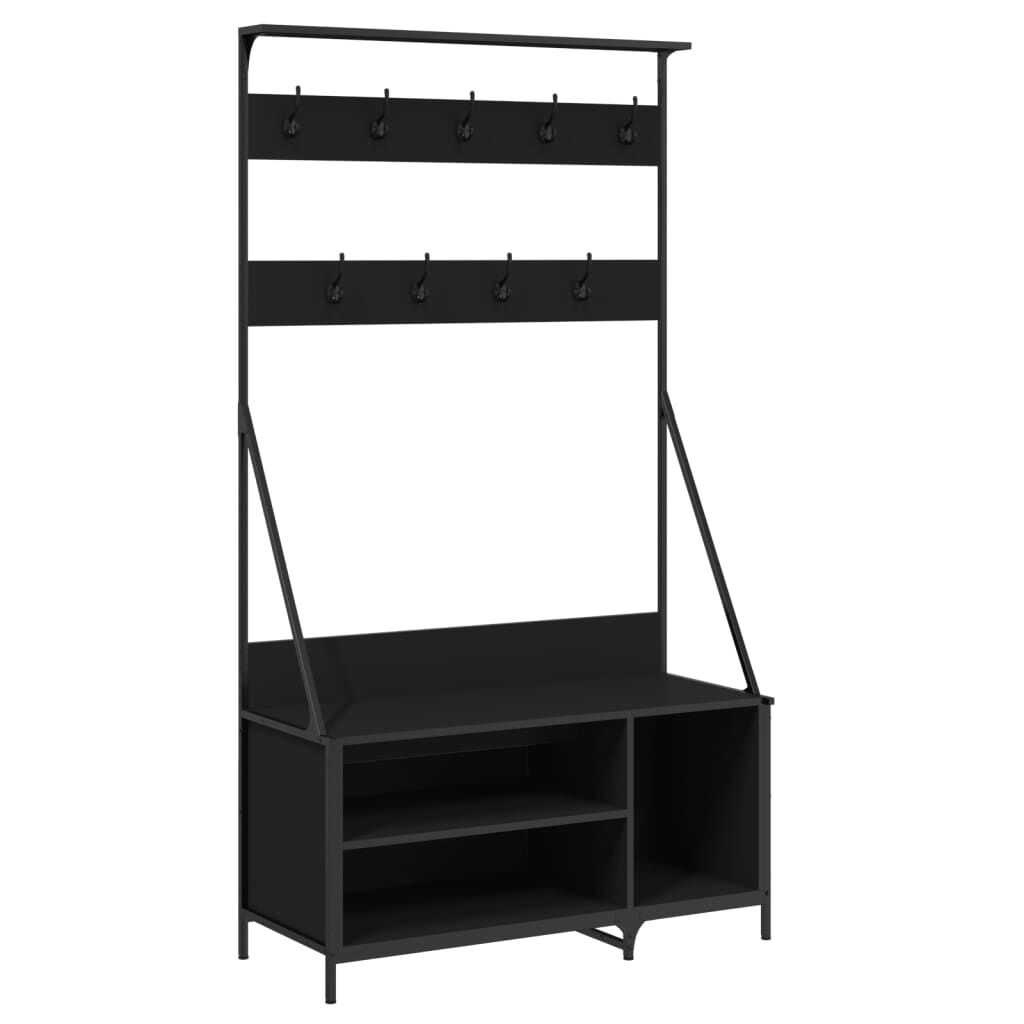 Clean up your closet and easily pick out your outfit with this clothes rack! Durable material: The engineered wood is of exceptional quality with a smooth surface and features strength, stability and resistance to moisture.Ample storage space: The coat stand offers ample storage space for keeping your clothes and bags well organised. The lower compartments are perfect for shoes.Stylish and compact design: The clean lines and minimalist design make the free standing coat rack blend into your room perfectly and is also perfect for small space due to its compact size. Good to know:Screws and plugs for inside the wall are not included. We advise to find and use screws and plugs suitable specifically for your walls. If you're not sure, you can consult with a professional. Please read and follow each step of the instructions.