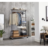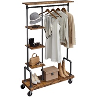 Clothing Garment Rack on Wheels with 5-Tier, Industrial Pipe Style, Rustic Brown