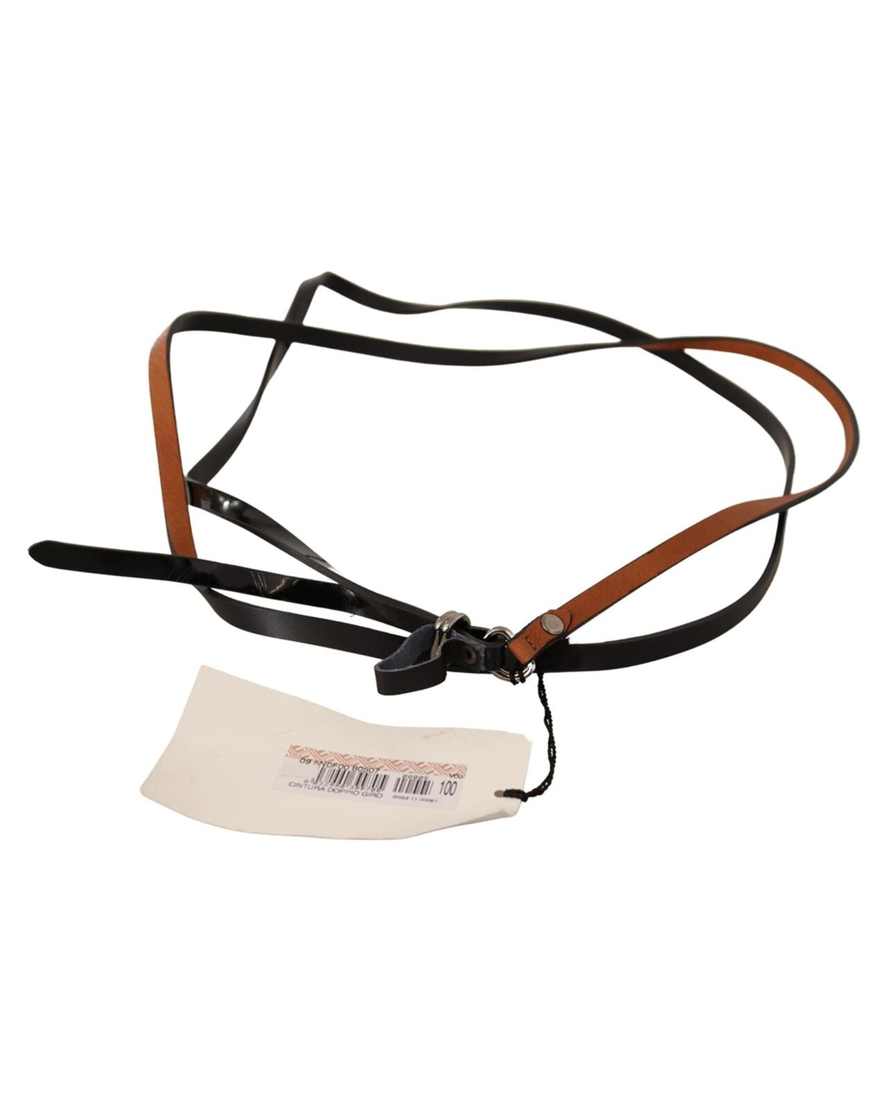 CNC Costume National Fashion Belt with Silver Tone Buckle - Brown Leather 100 cm Women