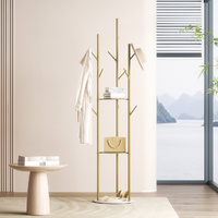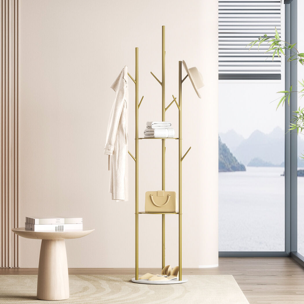 Sturdy construction. The faux marble base on this coat stand gives stability. No more wobbly coat racks for you. The rubber foot pads make it non-slip on hard surfaces. Hook capacity is 2kg each. Practical shelves can take up to 6kg each.