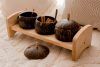 $33.83A beautiful set of 3 coconut spice jars with spoons and a storage rack.