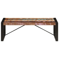 This industrial-style wooden coffee table will make a captivating addition to your living room. This couch table is made of solid reclaimed wood, enabling it highly stable and durable. Reclaimed wood has the characteristics of different woods like teak wood, mango wood, acacia wood, etc, which is already aged, weathered and dried, so it doesn't shrink or bend. Every step of the process is carried out with the greatest care, be it polishing, painting or lacquering. The strong powder-coated steel legs add extra stability to the table. The side table is easy to assemble. Important note: The colours and grains vary from piece to piece, making each piece unique; delivery is random.