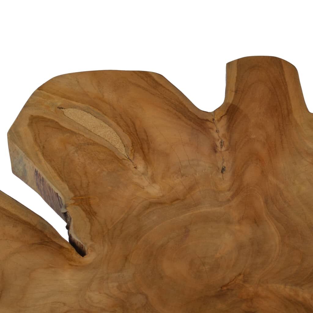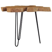 Equal parts sophisticated and distinctive, this unique wooden coffee table gives a nod to a natural charm and industrial style with its natural shape of the tree and steel legs. Constructed from extremely durable teak hard wood, this piece of teak furniture has been seasoned, kiln dried and then fine sanded to give a very smooth appearance. Teak wood is known for its exceptional strength and is the perfect choice for you to have a long lasting piece of furniture. The elegant steel legs and wood's live edge that follows the natural shape of the tree increase the beauty of the table. Important note: Variations in shape, colour and grain of the wood make each piece unique and slightly different from the next. The delivery is random, ensuring the exclusivity and individuality of your product.