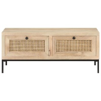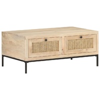 If you're looking for a simple touch of rustic charm to add to your interior decor, this solid mango wood coffee table is here! Solid mango wood is a tropical hardwood. It on the one hand has the strength to bear the weight, and on the other hand stands the wear and tear of time. Additionally, the exquisite craftsmanship and beautiful wood grains make every piece of couch tables slightly different from the next. The side table is equipped with ample storage room, so you can display or keep any items you'd like well organised. The steel base contributes to its sturdiness and stability. What's more, the end table features hand-woven cane patterns on the drawers, adding to its rustic charming. Important note: The colours vary from piece to piece, making each wooden living room table unique.