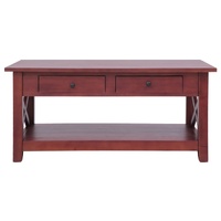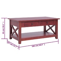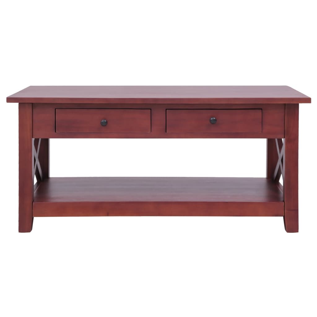 Add a touch of elegance with our stylish wooden coffee table! Featuring lacquer finish in classic brown, this coffee table with 2 drawers and a shelf offers ample storage room. With fine craftsmanship, it will be an instant upgrade to your living room interior. Made of solid mahogany wood, the couch table is built to last. Mahogany is a tropical hardwood, standing out with its beauty, durability and colour. Whether you are looking for a coffee table to rest your drinks or other necessities, or an end table with storage function, this table has it all. 2 drawers and the bottom shelf bring artful organization to magazines, books and more, whereas the contemporary design compliments the existing decor of your home.
