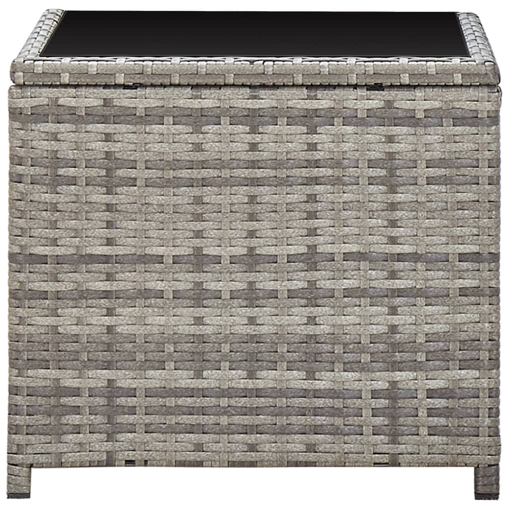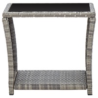 Our poly rattan coffee table will add a touch of modern elegance to your patio, balcony or garden with its understated, yet stylish design. Made of weather-resistant PE rattan, the outdoor table is easy to clean, hard-wearing and suitable for daily use. The powder-coated steel frame makes it very sturdy and durable. The table has a glass top, which is easy to clean; and the lower shelf offers extra storage space. Thanks to the lightweight construction, the tea table is easy to move. The bistro table is easy to assemble. Note: We recommend covering the side table in the rain, snow and frost.