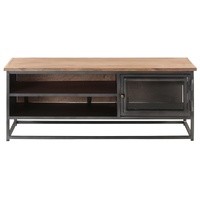 This stylish wooden coffee table with a practical design is perfect for adding a classic presence to your living room or office. This couch table is made of solid acacia wood, a hardwood with dense grains. The beautifully-designed centre table is stable, durable and eye-catching. The exquisite craftsmanship and beautiful wood grains make every piece slightly different from the next. Additionally, the powder-coated steel legs add to its sturdiness. The table features several compartments and 1 glass door so that you can store your magazines, books, etc. The sturdy tabletop is also ideal for placing drinks, food and ornaments. Important note: The colours vary from piece to piece, making each piece unique. The delivery is random, ensuring the exclusivity and individuality of your product.