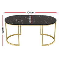 Introducing our stylish Artiss Coffee Table, featuring an MDF tabletop with PVC shrink-wrap and a luxurious marble finish. Supported by a robust metal frame with anti-slip pads, it offers easy maintenance and straightforward assembly for your convenience.