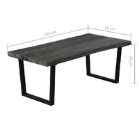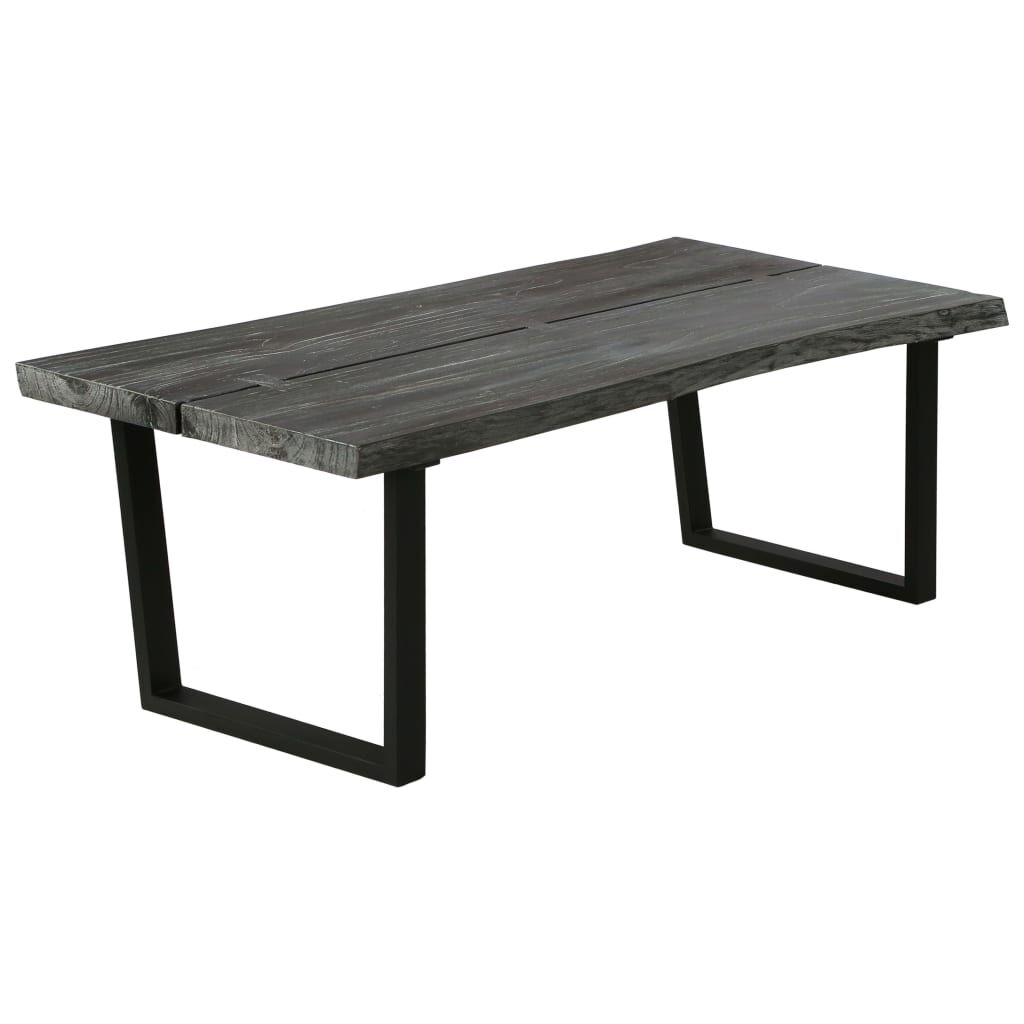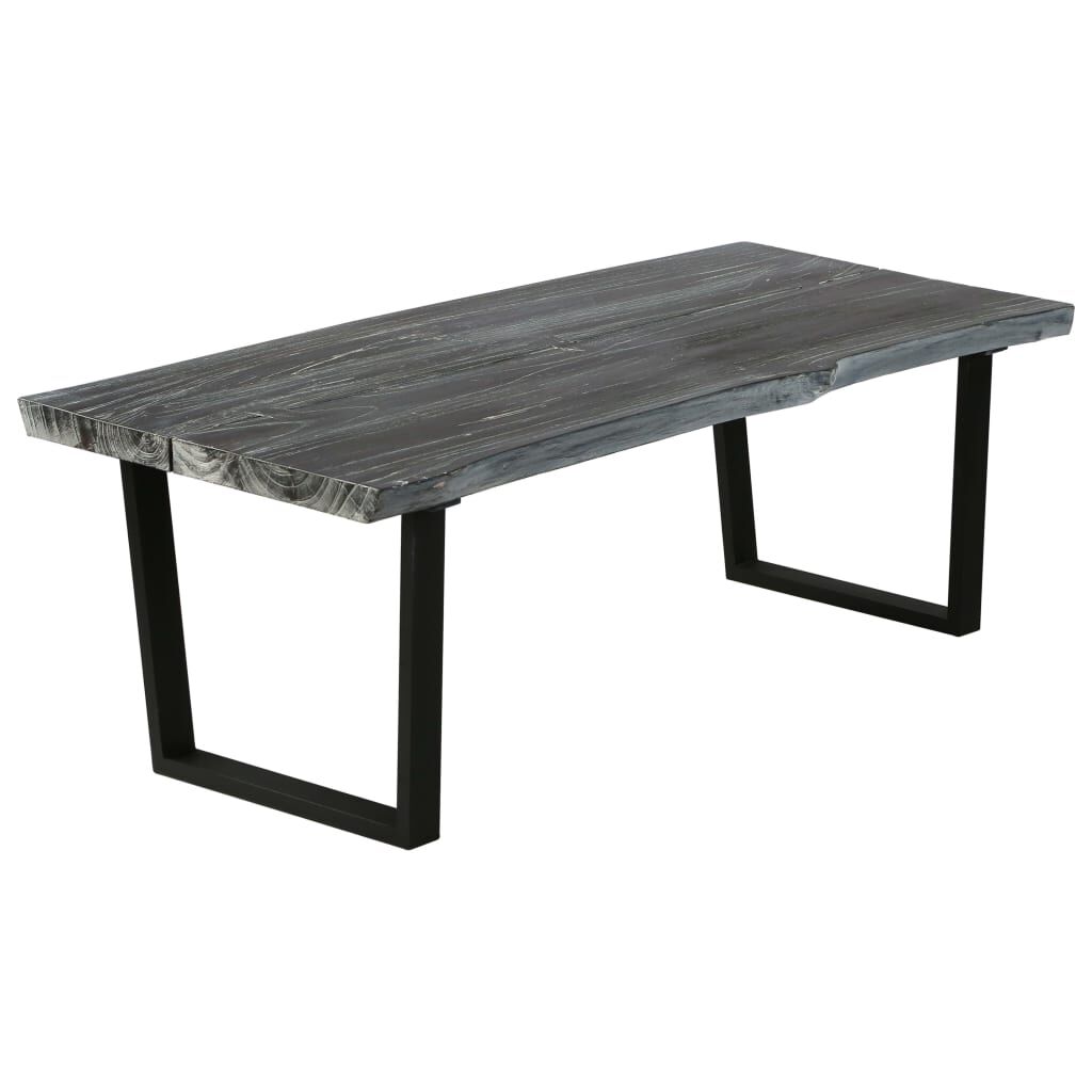 The wooden coffee table will make a timeless addition to your living room decor. Constructed from solid mindi wood and sturdy steel frames, the table is highly stable and durable. It features its naturally shaped edges which give the table a touch of rustic charm. The tabletop is ideal for placing fruit baskets or decorative items like vases and potted plants. The steel frames add to the table's sturdiness as well as to its industrial style. Every step of the construction process is carried out with the greatest care, be it sanding, painting and lacquering. Assembly is easy. Important note: The colours and grains of the wood may vary from piece to piece, making each piece unique and slightly different from the next. The delivery is random, ensuring the exclusivity and individuality of your product.