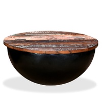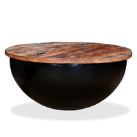 This unique wooden coffee table has an industrial design and will make a timeless addition to your home. The unique bowl-shaped steel base gives the table its industrial flair. This side table has a solid wooden tabletop, ideal for placing glasses, vases, fruits or ornaments, while the concealed storage compartment under the tabletop provides extra space to keep clutter at bay. The tabletop is made of solid reclaimed wood, which means that every table is unique and slightly different from the next, and has the characteristics of different woods, like teak, acacia, mango wood, etc. Reclaimed wood is solid, stable, durable and beautiful. The coffee table has undergone an elaborate process of polishing, painting and lacquering. Relax and enjoy entertaining your family and friends around this unique coffee table! Note: The item is already assembled; no assembly is required. Tabletop colours may vary from piece to piece, making each of our coffee tables unique. The delivery is random, ensuring the exclusivity and individuality of your product.
