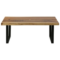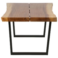 The wooden coffee table will make a timeless addition to your living room decor. Constructed from solid suar wood and sturdy steel frames, the table is highly stable and durable. It features naturally shaped live edges which give the table a touch of rustic charm. The tabletop is ideal for placing fruit baskets or decorative items like vases and potted plants. The steel frames add to the table's sturdiness as well as to its industrial style. Every step of the construction process is carried out with the greatest care, be it sanding, painting and lacquering. Assembly is easy. Important note: The colours and grains of the wood may vary from piece to piece, making each piece unique and slightly different from the next. The delivery is random, ensuring the exclusivity and individuality of your product.