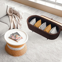 La Bella Coffee Table Storage Ottoman - Velvet Padded Blanket Box Bench IRENE - Brown