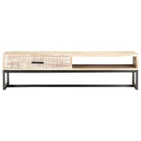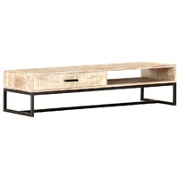 This wooden coffee table will make a great addition to your living room decor. The coffee table is made of solid acacia wood that has been given a beautiful finish by polishing, painting and lacquering to provide a refined look. The table is entirely handmade, and the beautiful wood grains make every piece of furniture unique and slightly different from the next. Its steel legs with powder coating add to its sturdiness. The sturdy top is ideal for placing your drinks, foods, fruit baskets or other decorative items. The drawer and open compartment have ample space for keeping all kinds of items, such as books, magazines and remote controls, organised and within reach. The coffee table is easy to assemble. Important note: The colours and wood grains may vary from piece to piece, making each of our coffee table unique. The delivery is random, ensuring the exclusivity and individuality of your product.