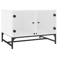 Coffee Table with Glass Doors White 68.5x50x50 cm